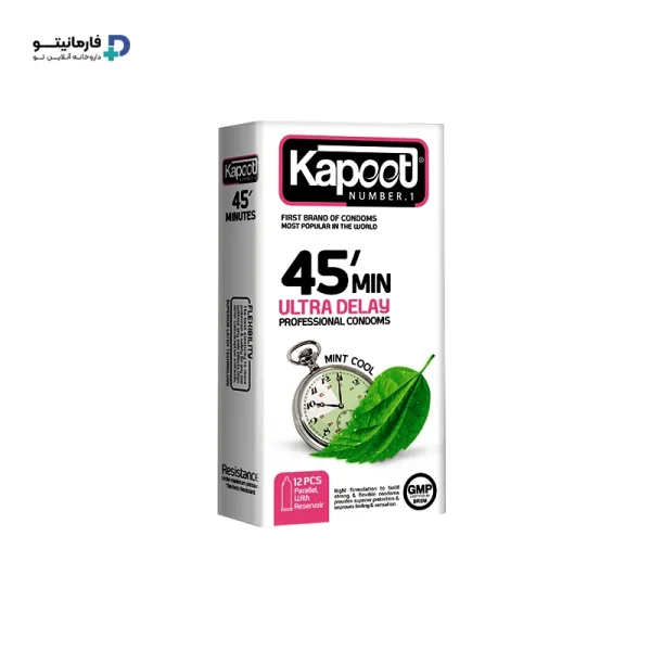 کاندوم تاخیری 45 دقیقه ای کاپوت از مرغوب ترین لاتکس های سراسر دنیا تولید شده است. از ویژگی های این محصول موثرترین روش کنتـرل انزال از طریق القــای حس سرما و استفاده از ماده موثر تاخیری حاوی لوبریکانت با رایحه نعناع برای همزمانی ارگاسم دو طرف می توان نام برد.